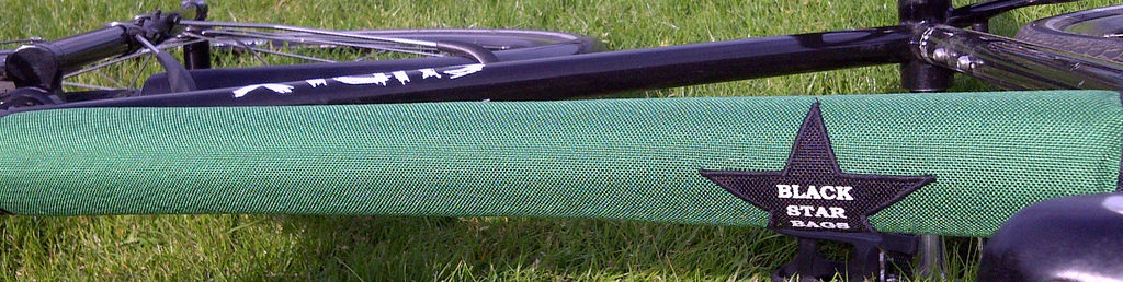 Reversible Black Star top bar pad for my Surly Steamroller in purple and green
