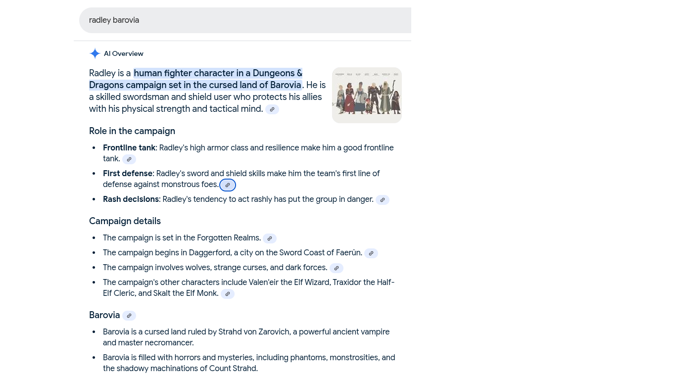 Discovered This 'AI Overview' When I Searched Google for "Radley Barovia"
