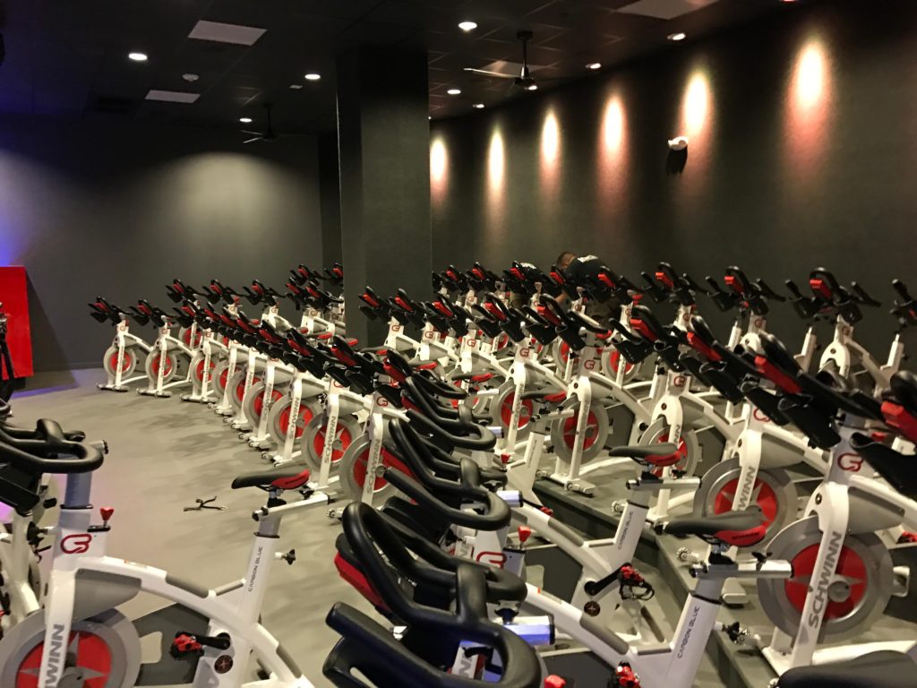 All the Schwinn spin bikes lined up in the studio are